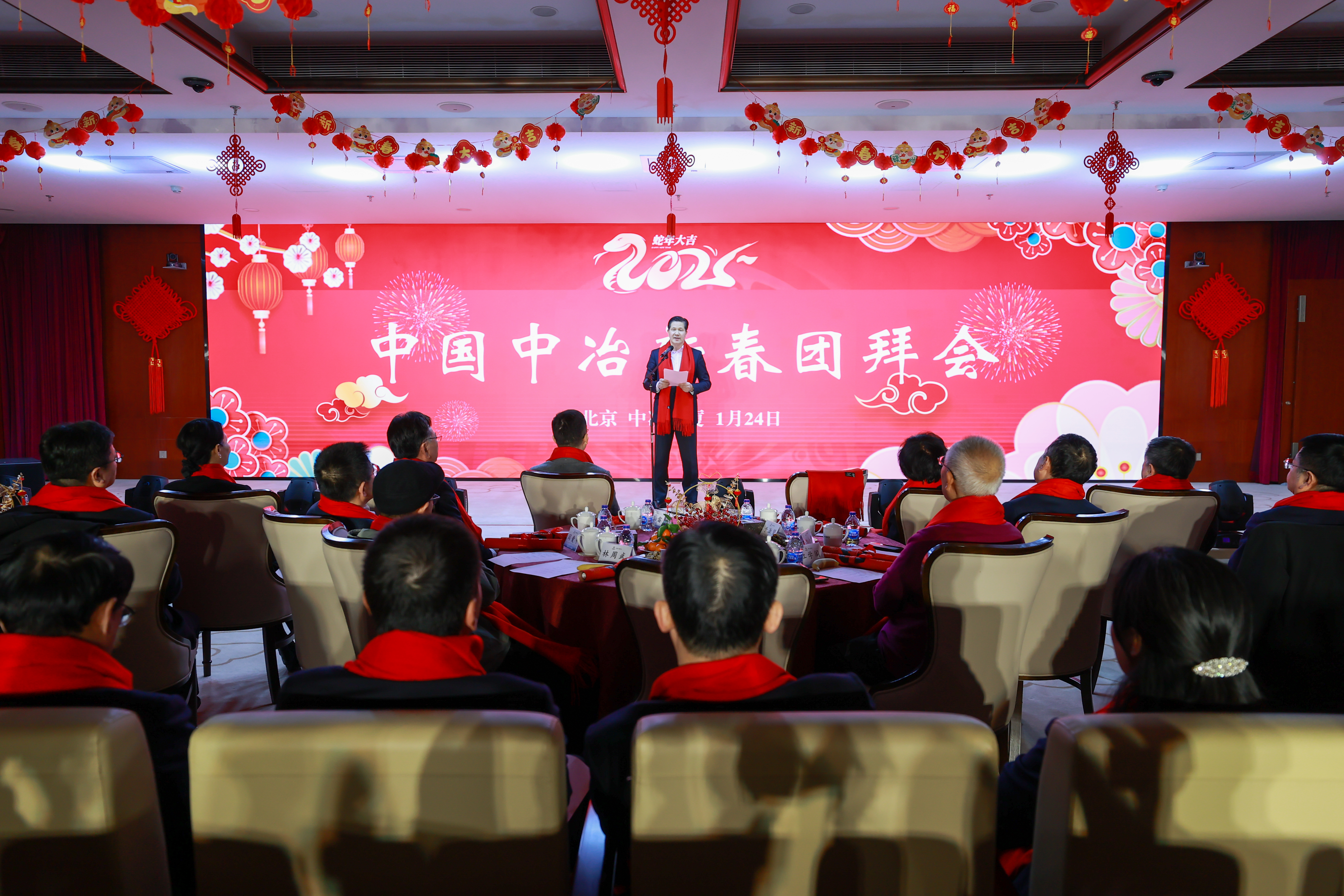 龙腾盛世山河秀,蛇舞新春日月新。1月24日,中国中冶举行2025年度新春团拜会。集团公司党组成员、副总经理,中冶集团暨中国中冶董事长、中国中冶党委书记陈建光发表新春致辞,代表中国中冶党委和董事会向离退休老领导、老同志和全体干部职工,尤其是远在海外、坚守一线的干部职工及家属致以衷心的感谢和新春的祝福。公司领导班子成员出席团拜会并集体拜年。