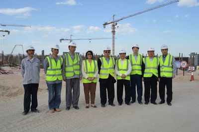 科威特当地时间4月14日,中冶集团党委常委、中国中冶副总裁王永光在中国十七冶集团董事长王建国、副总经理蔡进等领导陪同下,到科威特大学项目检查指导工作。