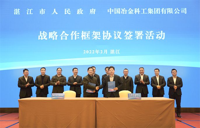 2月24日,中冶集团暨中国中冶党委常委、中国中冶副总裁朱广侠与湛江市委书记、市人大常委会主任刘红兵举行工作会谈,双方就加强交通市政基础设施建设、片区综合开发、生态环保等领域的深度合作进行深入交流,并共同见证了中冶集团与湛江市人民政府签署战略合作框架协议。