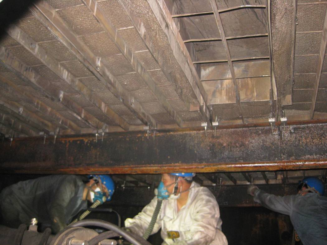 今年五月,第四检修分公司在实施第四次竖炉清空作业中,根据业主要求对过剩煤气的填料洗涤器进行了开检,发现洗涤器中的除雾垫坍塌,44块除雾垫衬垫散落在底层的网格板上,作业人员及时将除雾垫清理出。随后该分公司积极与宝钢中厚板分公司炼铁厂和设备部沟通,取得了除雾垫的备修业务。并进行了项目调查,编制详细的修复方案,认真组织备修力量,为除雾垫的安装做好了前期准备工作。