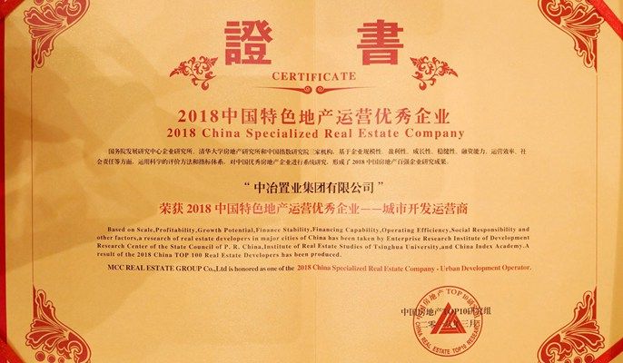 中冶置业荣获“2018中国特色地产运营优秀企业——城市开发运营商”奖项